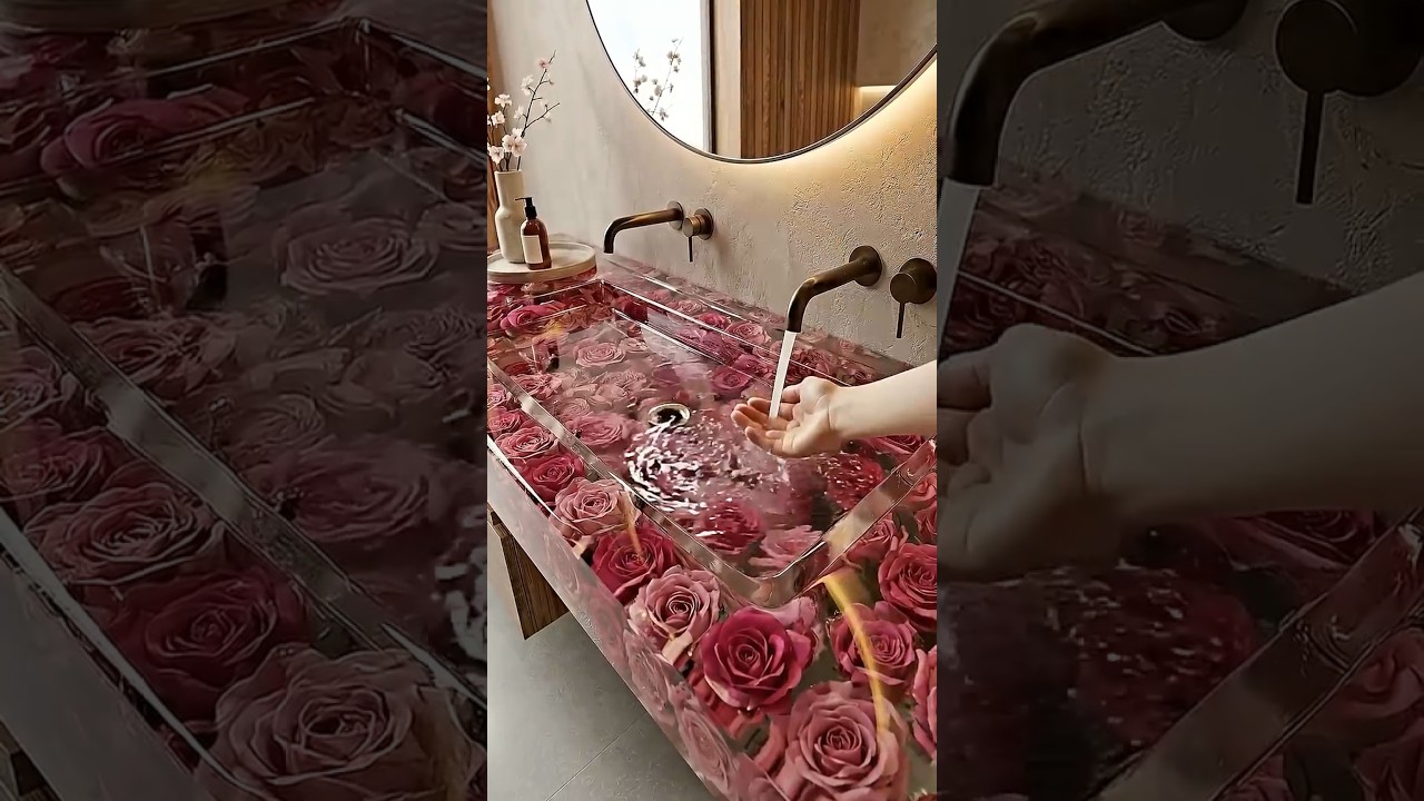 18 Modern Bathroom Renovation Bathroom Remodel Ideas for Interior Design – This Sink Is Beautiful! ✨Pink Roses Encased in Epoxy 😍 #interiordesign #relax #diy #shortsfeed